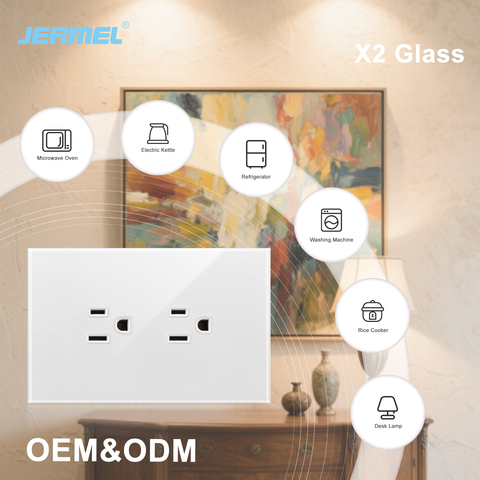 Jermel 118X2-12เต้ารับแผ่นกระจกติดผนังช่องพอร์ตโทรศัพท์แลนช่องโทรออกช่องเสียบผนังสำหรับปลั๊กไฟ